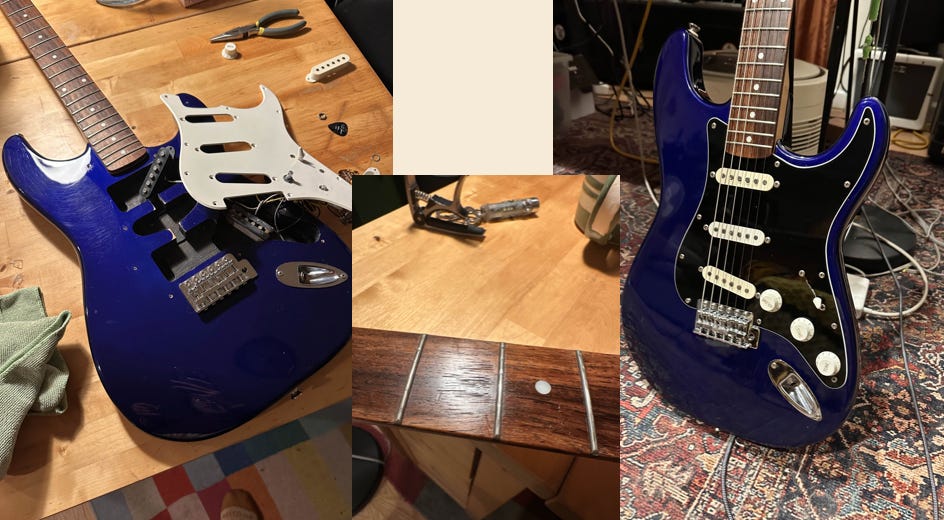 The guitar I started practicing on this fall was my first from 2004, a budget Fender Squier that’s fretboard has been reshaped by my hands. I regularly played and wrote music until my sophomore year of college. Then I stopped abruptly due to bad advice.